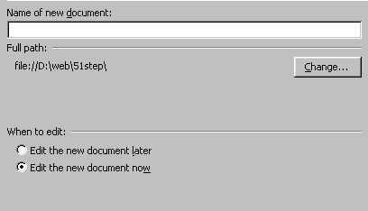 單擊"change"按鈕改變新文件的保存目錄,如果你現(xiàn)在并不打算編輯它的話,同時(shí)選中左下的"edit the new document later"復(fù)選框.
