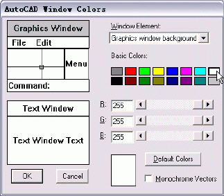 1. 在autocad r14中繪制好圖形,選工具(tools)->系統配置(preferences)->顯示(display)->顏色(color),將背景色變成白色(否則貼入的圖會帶純黑色背景),單擊“ok”,如圖2。