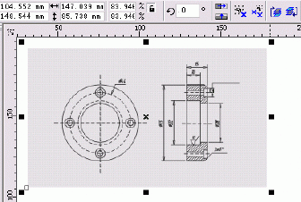 5. 進入coreldraw,新建一個文檔。右擊工作區,選“輸入”(或者用快捷鍵ctrl+i),從一大串支持的文件格式中選“wmf格式”,選擇剛才輸出的wmf文件,拉出一個對象框,導入。多少有點不幸,我們所需要的圖形和一大塊空白緊密結合,成為一體(我想這就是autocad中的白色背景啦),白占了空間,而且編輯起來很不方便。如圖5。(為了更加明顯,圖中用灰色突出表示)