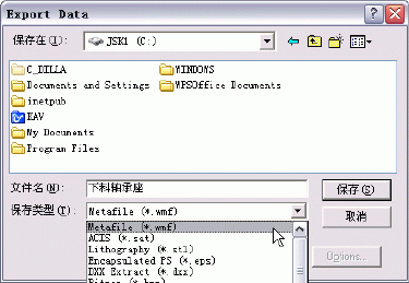 4. 選擇要輸出的圖形,從“文件”(file)菜單中選“輸出(export)”,選擇輸出為wmf文件格式,如圖4所示。