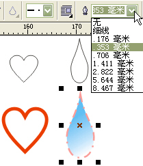 其他的就不再一一舉例,可以自己嘗試。順便要說的是,從屬性欄上可以方便的改變其輪廓線的線型和線寬。如圖7。