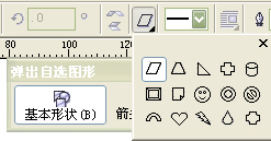 好了,不妨先繪制一些有趣的圖形試試看。我們先從頭開始,在預(yù)設(shè)形狀工具條中單擊"基本形狀"按鈕,然后單擊屬性欄上"自選圖形"按鈕,可以看到它提供了共15種自選圖形,如圖2。我們就來做一些例子研究一下吧。