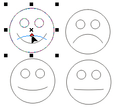 意猶未盡,再選一個笑臉圖形――隨著控制點的拖動,笑臉也在變化――簡單的幾種表情都有了!如圖6。是不是很有趣?