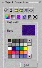 windows菜單下的dackers子菜單中新增properties命令,執行這條命令,可以打開object properties泊塢窗。這個泊塢窗中提供了被選對像的一些基本屬性,包括:填充、輪廓線、頁、表格。您能利用這個泊塢窗了解被選對象的性質,也可以利用這個對話框對被選圖形進行編輯,這,有點像中的object控制面板。object properties泊塢窗如圖2所示。