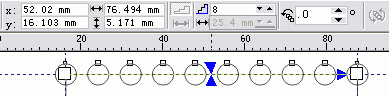6、重復4,5兩步操作,最后結果如圖8。要注意的是,因為小圓是在矩形的長,寬不等的兩條邊上建立調和,所以調和的步長不相同,但是兩條長邊的調和步長一定要相同,兩條短邊的步長一定要相同,至于具體步長數值請自己嘗試吧。