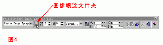 如上文所述的同樣方法,繼續使用“位圖編輯”工具。但這次當彩球出現在corelpaint中時,各位需點選工具列上位于“筆刷”欄中的“圖象噴涂”工具,如(圖3)。此時,“圖像噴涂”工具將出現在你的屬性欄中。點擊位于屬性欄尾部的“圖像噴涂”設置圖標并選取“保存選項為圖形列表(save options as image lists)”的設置。對于其它選項,諸如:“保存為方向性圖形列表”,因在本次習作中不涉及,則不做選擇。到這里,我們還應該設立一個新文件夾來保存噴涂圖形和圣誕彩球,否則,在具體噴涂使用時會造成麻煩。說到這,我要講講上述工作的意圖,其實就是為“噴涂工具”制作“彈藥”,來制造我們想要的效果,從而達到裝飾圣誕樹的目的。(到這里我們完成了一個噴涂文件的制作)