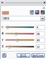單擊它可迅速打開color docker(色彩泊塢窗),方便設置填充色及輪廓色(右圖)。