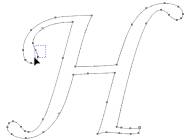 第六步:選取漸變對像,單擊屬性欄上的"使圖像適合新路徑"命令 ,當光標在"h"字上變成曲線箭頭時,點"h"字,圖形就會沿著路徑走動,然后在屬性欄上設置漸變圖形層數為"250",轉動方向為順時針或逆時針
