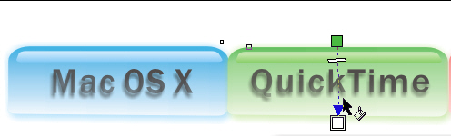 7.做到這里,再堅持幾步,就可以欣賞我們的酷按鈕了!下面要加上文字以豐富按鈕的內(nèi)容。選文本工具,輸入”macos x"并選擇一種合適的字體,設(shè)置顏色為黑色,并加上陰影,移動到按鈕中心,還可以用“align and distribute”功能,進行準確的對齊,結(jié)果如圖8。