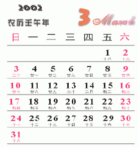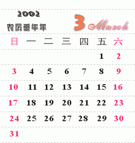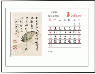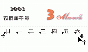 8.下面要進行日歷文本的制作了。同樣也要大致規劃一下,關于日歷中星期,陽歷和陰歷等文本的位置和排版, 然后再進行制作。結合2002年3月實際的日期和星期,先設置輔助線以基本定位上述文本之位置,可參見圖1。