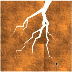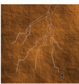 3.選中剛才畫好的所有折線后點擊菜單“窗口/卷簾工具/自然筆”,然后在窗口右側的自然筆卷簾窗中選擇筆刷,筆刷立刻自動應用于畫好的折線上。接著根據裂痕的形態分別調整每一條折線的粗細,要有粗有細才更形象逼真。方法是選中折線后,在屬性欄中輸入相應的數值就可以了。最后再分別用右鍵點擊折線邊緣,在彈出的菜單中選擇“分離”將原始線段與筆刷分開,刪除原始線段后組合全部折線(圖4)。