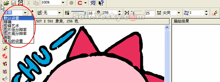 節點縮減是讓生成的矢量圖形的節點個數,可在1-100內選擇,設定的節點個數越多生成的矢量圖上的節點就越少(圖12).