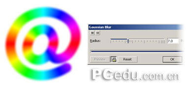 26.選擇剛才轉換的位圖對象,執行bitmaps > blur > gaussian blur...(位圖>模糊>高斯模糊)命令,將模糊半徑設為7.0像素。使用預覽功能,查看圖像變化。滿意后點擊ok應用模糊濾鏡。(圖26)