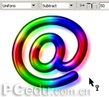 也許你會覺得奇怪——如果在第25步中沒有建立包圍@形狀的矩形,直接將彩色填充的@形狀轉換為位圖,最后的結果似乎也沒有什么區別。但由于第14步轉換的彩色位圖和第25步轉換后即將模糊處理的位圖大小基本相同,放在一起有些難以選擇,所以,我想作者創建一個無填充無輪廓的矩形,將它和彩虹對象一起轉換為位圖,大概最主要是為了便于選擇的緣故。