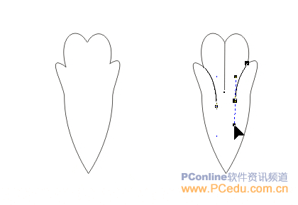 3.將橢圓形調節成花瓣形狀。(為了豐富花瓣的外形,可以在橢圓形線上雙擊,添加節點后調節花瓣外形)