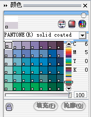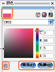 移動(dòng)滑塊調(diào)節(jié)到需要的顏色,上面是調(diào)節(jié)出的色樣,點(diǎn)擊右下角的按鈕就可以分別對(duì)物件和輪廓進(jìn)行填充。