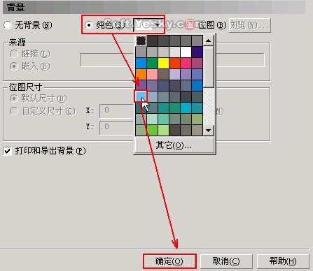 (5)在打開的“背景設置對話框”中選擇“純色”,并在下拉顏色選擇框中選擇天藍色,單擊“確定”按鈕,設置完畢。