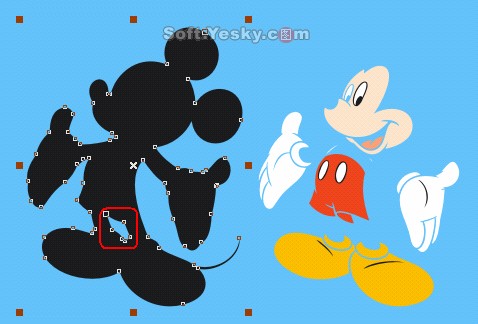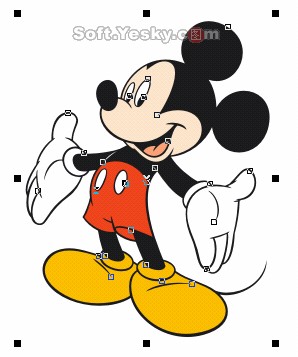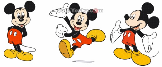 主要工具:圓形工具、貝塞爾工具、形狀工具、文本工具等 下面先給大家看一下米老鼠的原圖,本文只介紹其中一種造型的繪制方法,原文件中會給出一套米老鼠的動作給大家參考,可以直接導入coreldraw中進行分析。