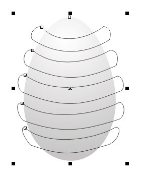 好,至此蛋的形狀完成,下面我們來“削皮”,使用“貝塞爾工具”在圖中繪制出如圖所示的圖形