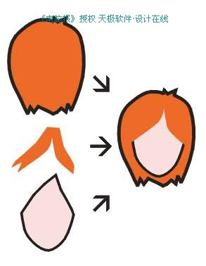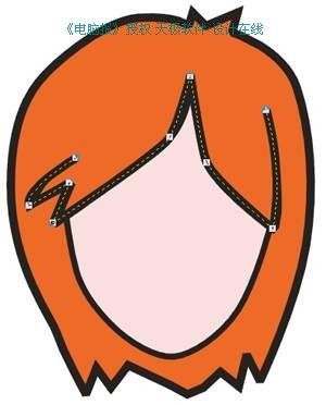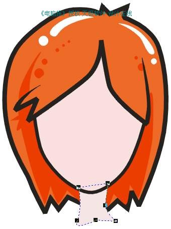 女孩的輪廓大致可以分為兩個(gè)部分,即頭發(fā)部分和面部部分。先用coreldraw左側(cè)工具欄中的“貝茲曲線工具”繪制出頭發(fā)的輪廓線。繪制完畢以后在工具欄中選擇“造型工具”,對(duì)曲線進(jìn)行調(diào)節(jié)。然后選中輪廓線,在色盤中單擊橘紅色,為輪廓進(jìn)行顏色的填充。