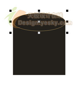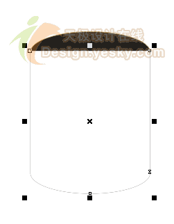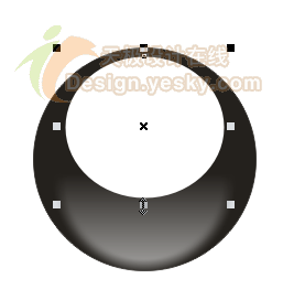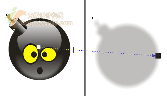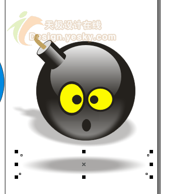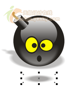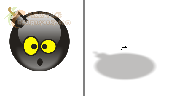 剛才在畫布外面畫的圓形已經沒用了,可以按 "delete"刪除。 對于陰影,我們使用挑選工具再次變形,如圖所示: