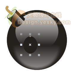 把白色的陰影用挑選工具(也就是箭頭工具)選中,進行縮小變形,按"shift"+"page up"把它放置黑色圓形的上方,使用挑選工具把它放到合適的位置上,最好使用“shfit”連選后面的黑色圓形,然后使用對齊命令“c”。如圖所示: