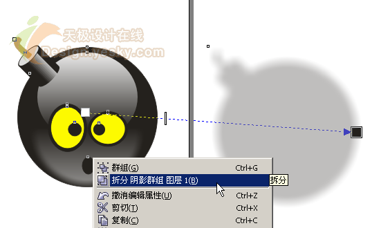 對陰影進行拆分操作,然后使用挑選工具拖移到畫布里。如圖所示:
