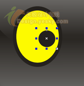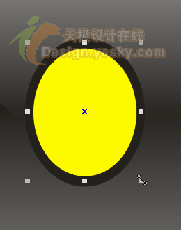 使用挑選工具選中剛才繪制的橢圓,按小鍵盤區的“+”,再制一個一樣的橢圓,適當縮小,填充黃色。如圖所示: