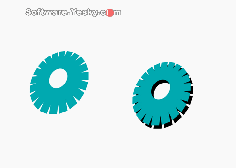 選中齒輪按“+”號鍵,在原位置復制一個齒輪(按加號在原地復制對象)。按alt鍵,點擊齒輪選中下層的齒輪(按住alt鍵可以選中被別的對象擋住了的對象)。點擊色盤中的黑色,把下層的齒輪改成黑色。把光標移動到選中標記中心的小×上面,光標變成十字箭頭,拖動鼠標,把下層齒輪移動一點,使兩個齒輪錯開一點位置。這樣一個簡當的有立體感的齒輪就做好了(如圖8)。