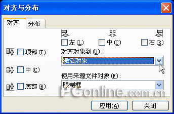(4)在“對齊對象到”下拉列表框中,可以選擇將選定的對象對齊到“激活的對象”、“頁面邊緣”、“頁面中心”、“網格”或“指定的點”上面。