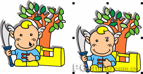 小知識:在工具箱中選中“挑選工具”,按下鍵盤上的 tab 鍵,就會選中在 coreldraw 中最后繪制的圖形,如不停的按 tab 鍵,則 coreldraw 會按用戶繪制順序從最后開始選取對象。