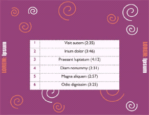 10.用向下的方向鍵,把曲目列表向下輕移數(shù)下,放置到稍低于頁(yè)面中心的位置。(圖position the track-listing)