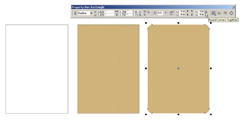 6.在背景矩形被選擇的情況下,確定屬性條上的round corners together按鈕被激活,這樣可使矩形四個角的圓角化程度保持一致;