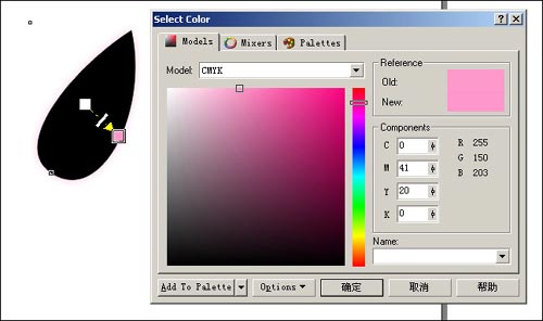 1)先使用shape tool畫出一片荷花瓣輪廓。先隨便填個顏色。