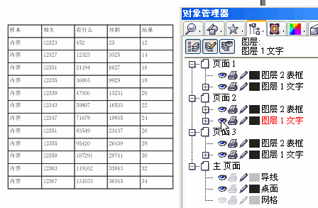 11、 我們先來編輯文字部分,為避免框線的干擾,在“對象管理”泊塢窗中將表格框線所在的圖層點為“不可編輯”