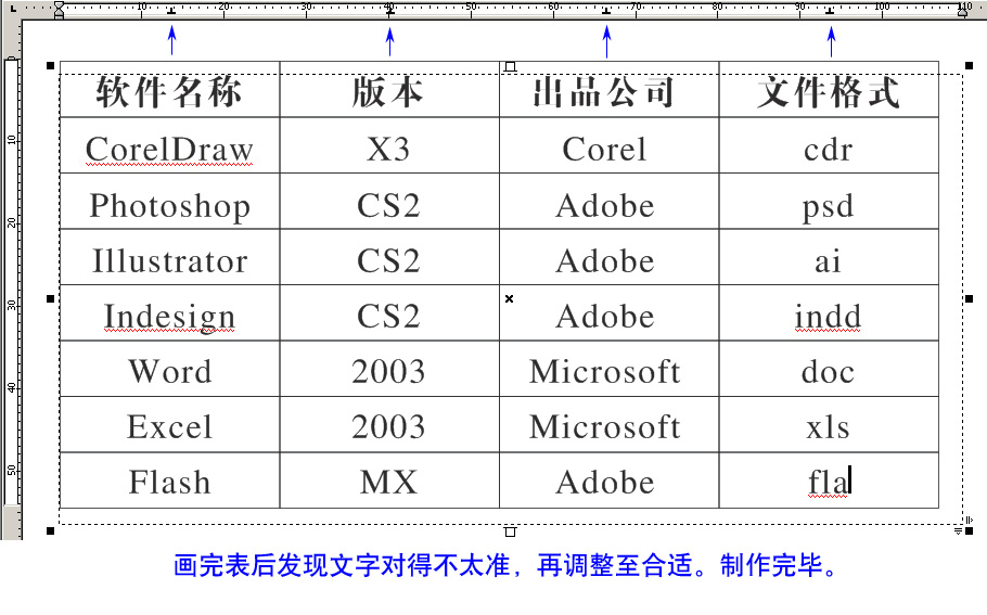 6、覺得對的差不多了,就用表格工具畫個表格,同時可以檢查文字排得整不整齊。