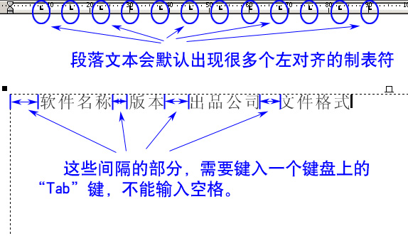 在段落文本的專用標尺上,會出現很多制表符,形狀象“l”。