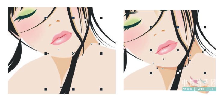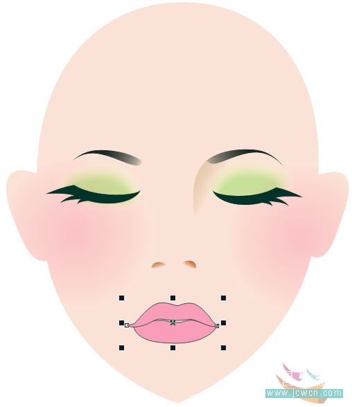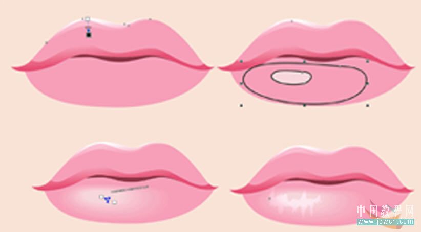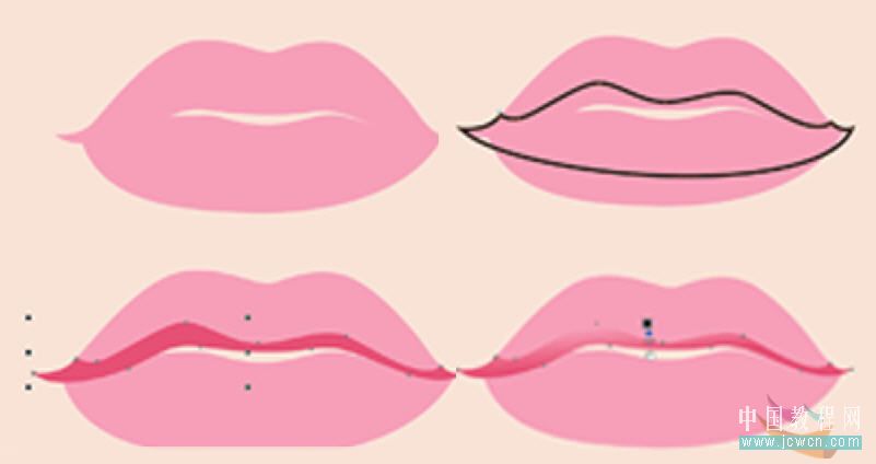 用修整中的相交命令、交互式調和工具等修出嘴巴的暗調與高光,制作流程如下圖所示