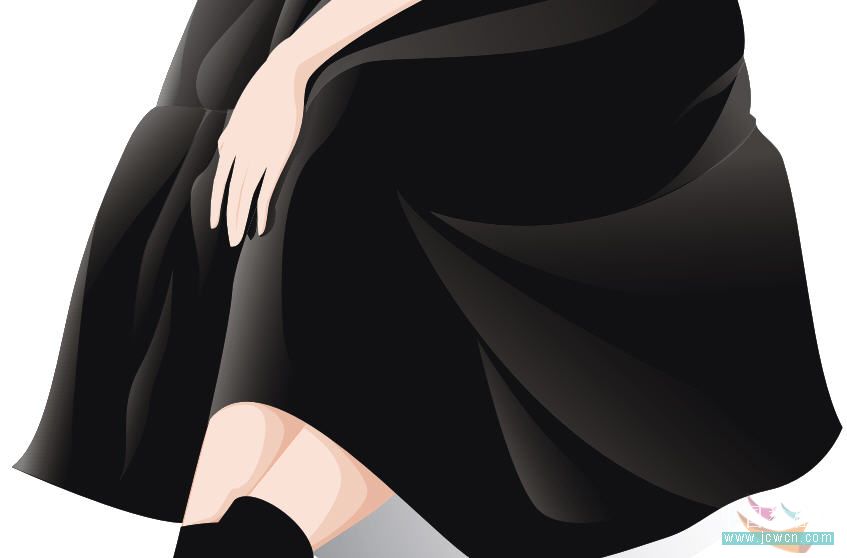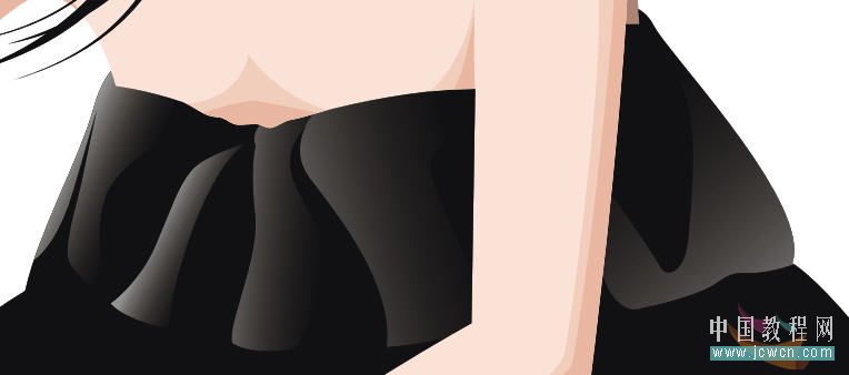 由于我們前面畫的衣服是黑色的,沒法再細化暗部了,因此在這里,我們直接勾出衣服的受光面就行了