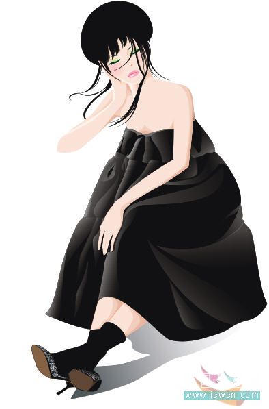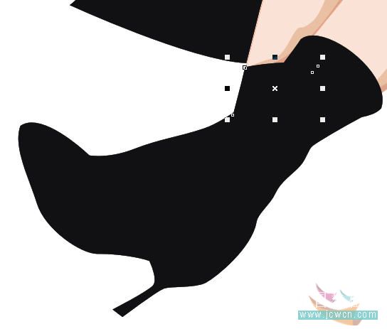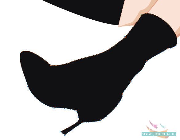 17、使用曲線類工具繪制人物的鞋子,這個過種需要大家有耐心且慢慢地調整哦,然后填充黑色并去除輪廓,如下圖所示: