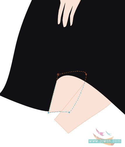 16、利用修整中的相交命令,取得腿部的陰影部分,分別填充暗一些的扶色,如c3、m25、y25等。填充后的效果如下圖所示: