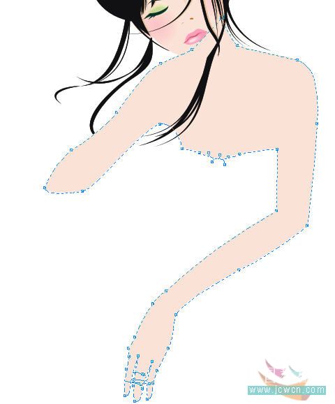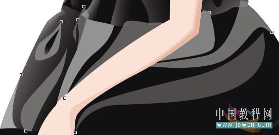 用曲線工具繪制人物手臂,用上面的方法將顏色及輪廓復制給它,如下圖所示: