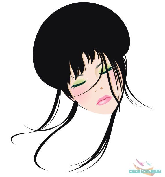 先使用曲線類工具繪制頭發前面的部分,填充為黑色并去除輪廓。如下圖所示: