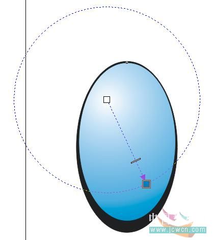 10、將復制的橢圓適當縮小,選擇“交互式填充工具”,在屬性欄中設置“填充類型”為“射線”,起點顏色為藍色(c:100,m:10,y:10),終點顏色為白色,如圖10a所示: