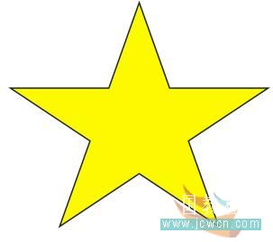 18、下面繪制小精靈手中的魔棒。選擇“星形工具”,在屬性欄中設置星形邊數:5;尖角為20,然后繪制一個星形,并設置其填充顏色為黃色(y:100),輪廓為2 mm粗細的黑色,如圖18所示: