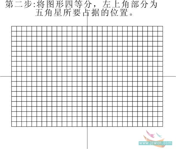 二、將圖形四等分,左上角部分為五角星所要占據的位置