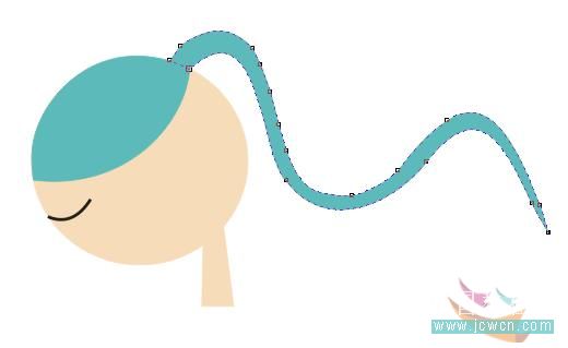 5、將頭發路徑復制一份(按小鍵盤上的“+”號鍵進行復制),然后單擊屬性欄中的“鏡像”按鈕,將頭發路徑鏡像翻轉,然后調整其大小,放置在如圖6所示的位置。