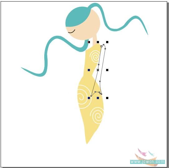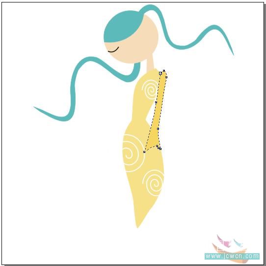 6、用“鋼筆工具”繪制如圖7a所示的路徑作為女孩的裙子。