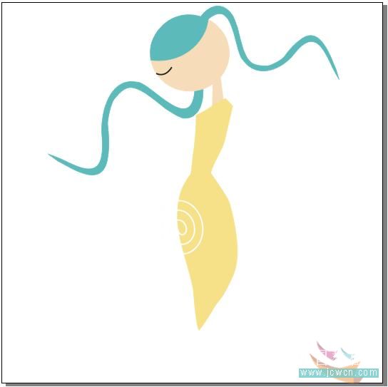 然后填充嫩黃色(c:2,m:9,y:47),去掉輪廓線。如圖7b所示。