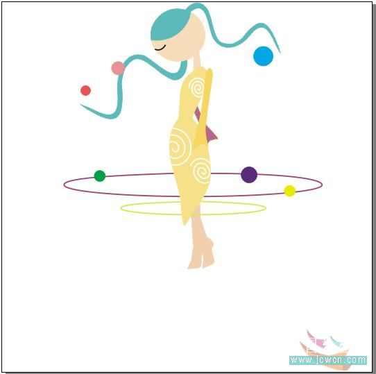 主要使用“橢圓工具”、“鋼筆工具”、“3點曲線工具”、“刻刀工具”和“橡皮擦工具”繪制少女各部分的圖形,然后添加圓形背景并使用“交互式填充工具”填充漸變。